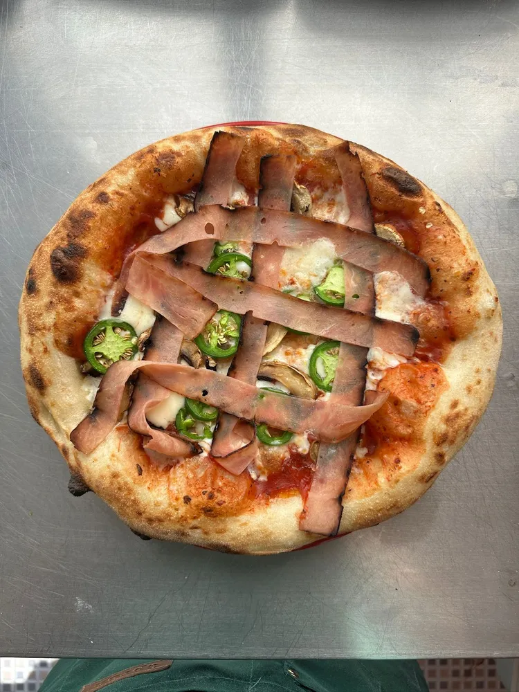 Salsa pomodoro, mozzarella, champiñón,tocino ahumado, chile jalapeño.