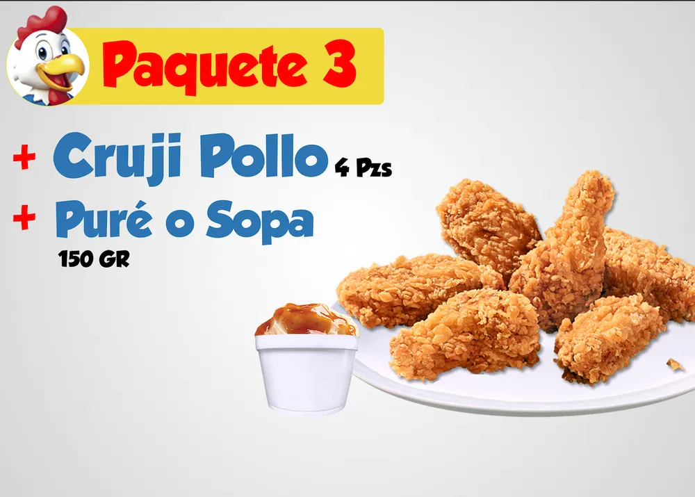 4pzs Cruji Pollo + 1 Puré 150gr ó 1 Sopa 150gr.