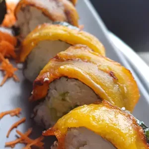 Pf: Mango y philadelfia Pd: Camarón empanizado, pepino y agu ...