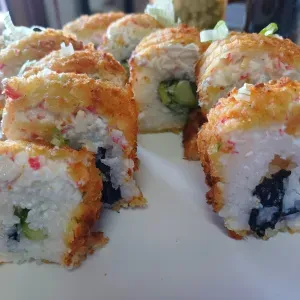 Pf: Ajonjolí Pd: Queso, manzana,camarón empanizado en coco.