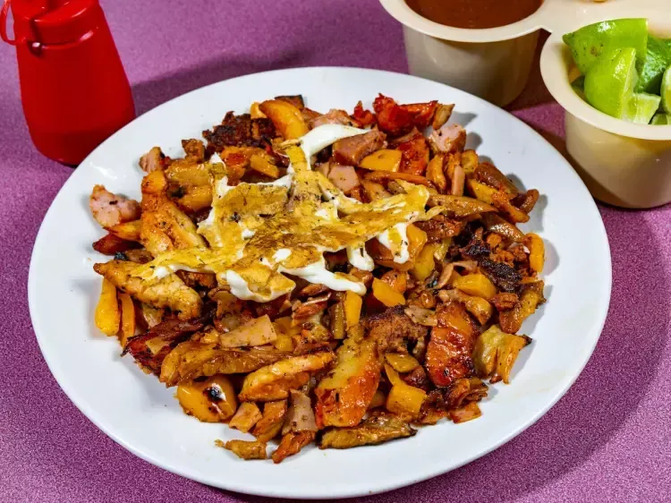Pastor, Tocino, Jamón, Chorizo, Pimiento, Morrón, Cebolla, Piña, Cilantro y Queso.
