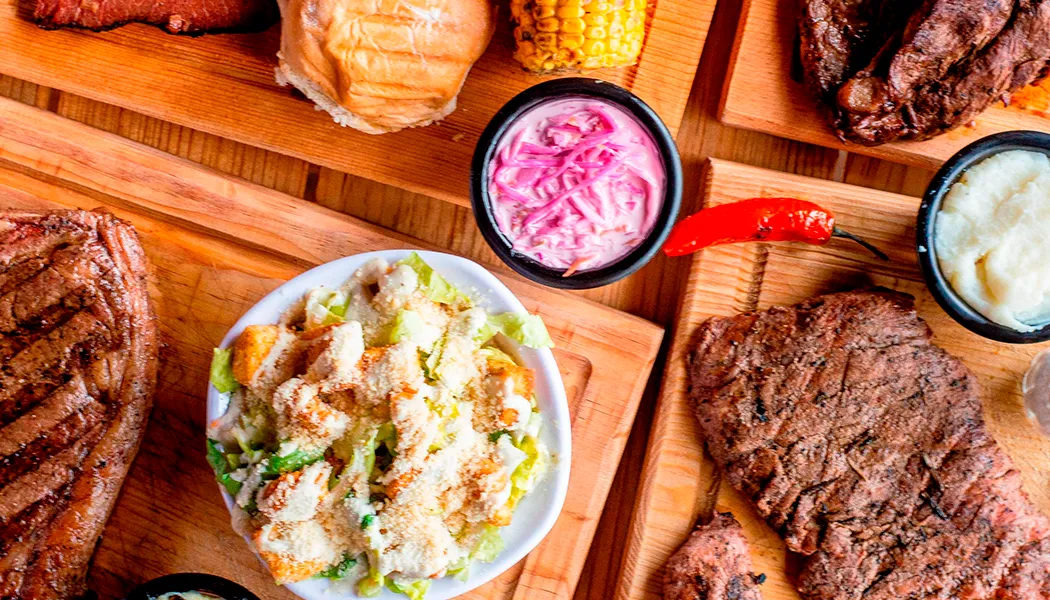 Sirloin 300 grs, salsa negra selecta, aguacate, cebolla morada, tostadas